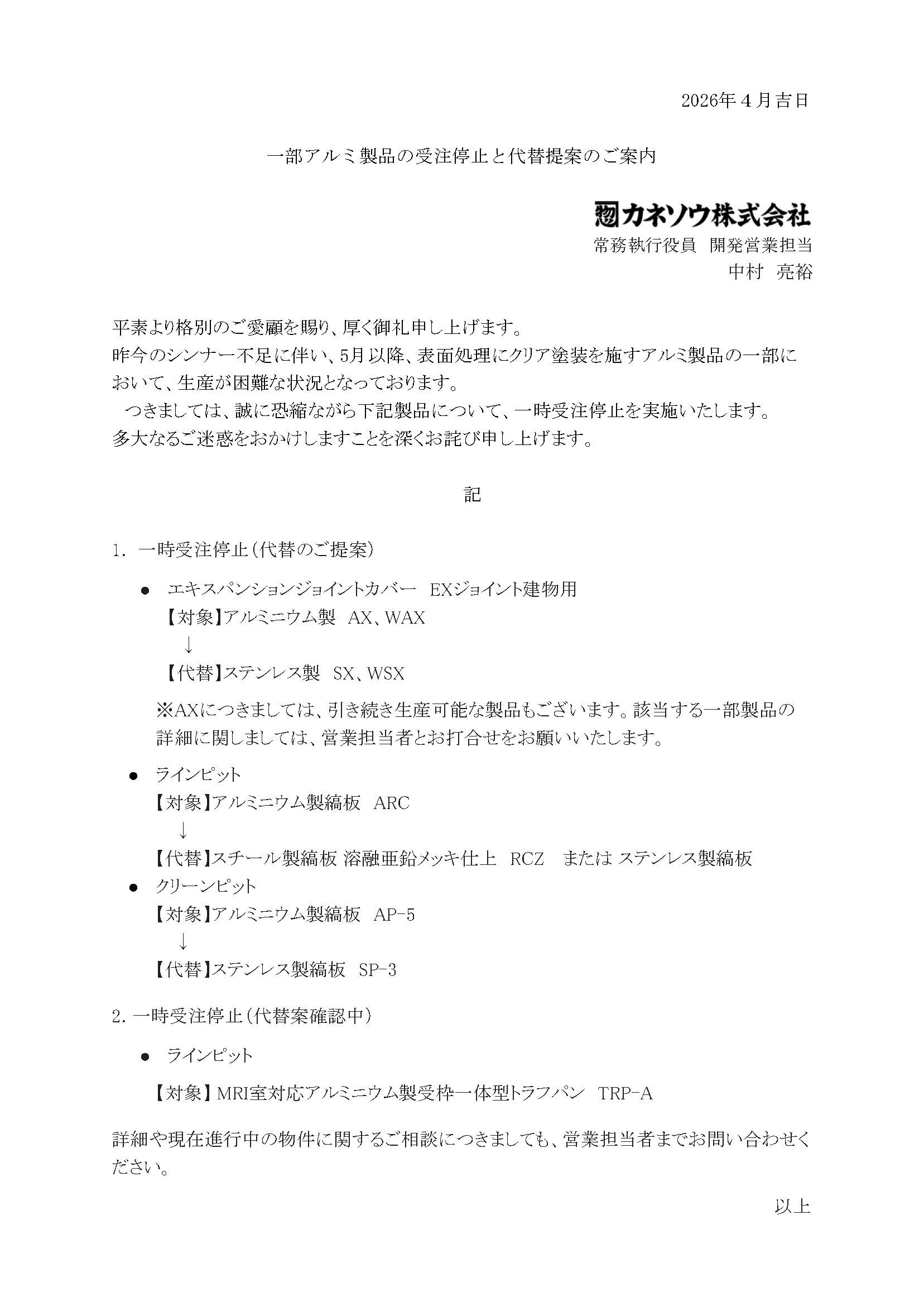 高耐食性ルーフドレンRシリーズの受注生産化について
