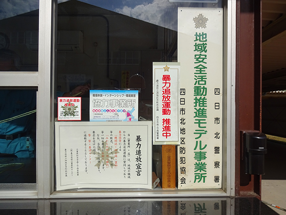 地域安全活動推進モデル事業所に指定され、地域防犯活動を継続しています。本社・工場の厚生棟や駐車場に防犯ポスターや地域安全啓発旗を設置し、社員及び、地域のみなさんの意識高揚につなげています。また交通安全県民運動期間に合わせ、出勤時のシートベルト着用確認、運転中の携帯電話使用禁止について確認を行い、交通法規の順守、交通安全につなげています。