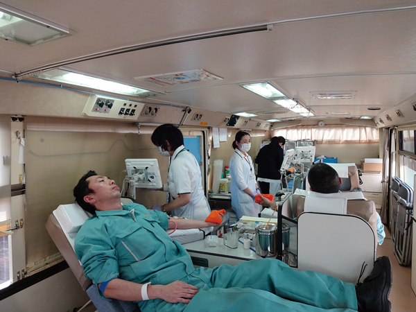 献血活動は、健康な社員が誰でも出来る社会貢献活動として毎年2回実施しています。今年も、三重県赤十字血液センターから献血バスが本社・工場を訪れ、 約30名が献血に協力しています。カネソウでは献血活動の継続により、日本赤十字社三重県支部支部長から、献血活動推進団体として表彰いただきました。今後も、毎年2回の協力を継続していきます。