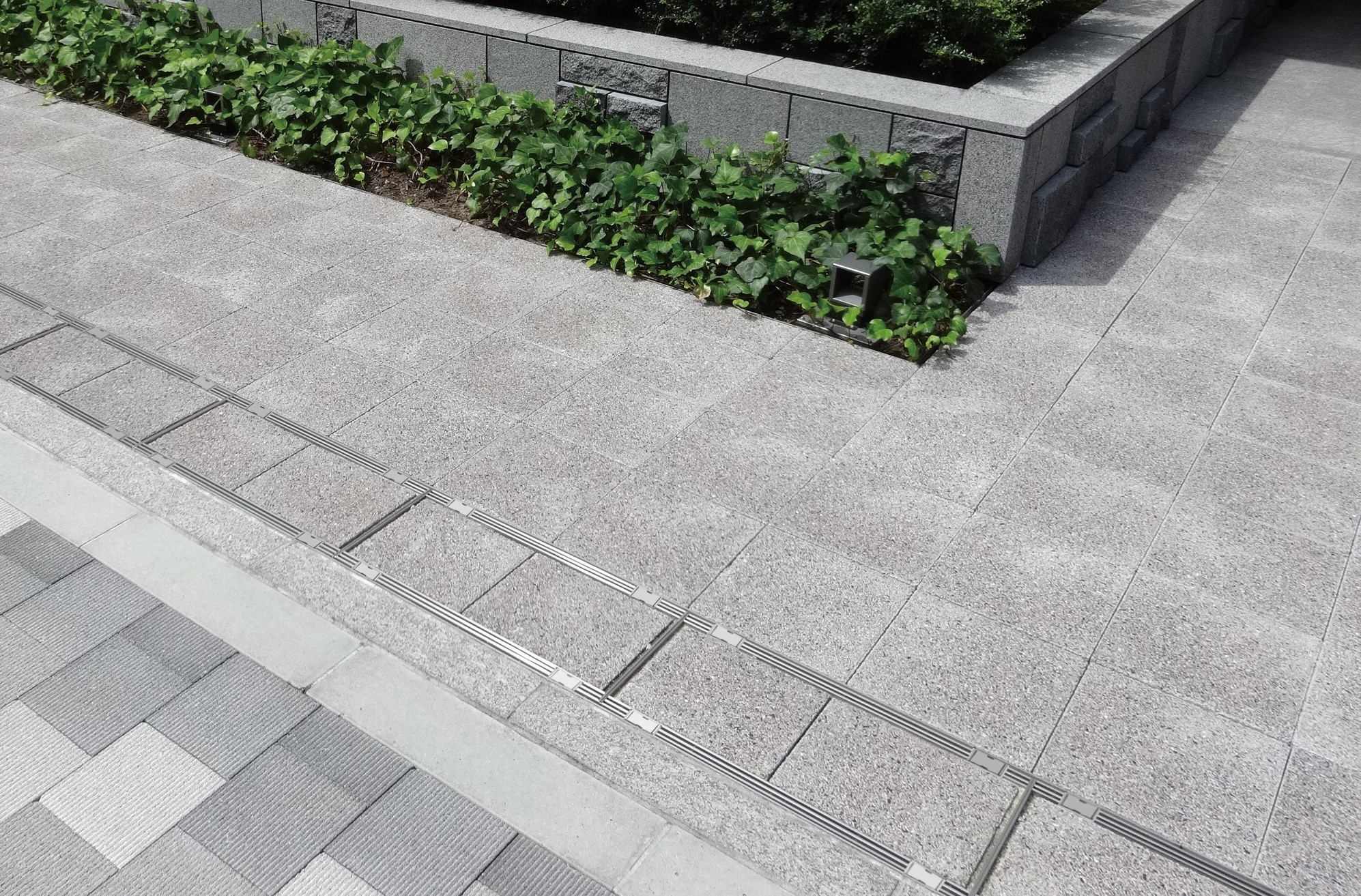ボルト固定部にボルトキャップ(付属品)を装着することにより、落葉やゴミの溜まりを防ぎ、車椅子や台車の通過、ハイヒールでの歩行もスムーズに行えます。また、ボルトキャップの仕様を見直し、従来品に対してコストダウンしました。