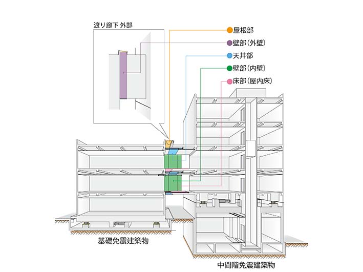 2棟の免震建築物を繋ぐ、免震ー免震エキスパンションジョイント