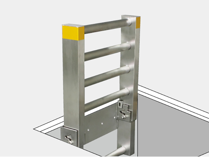 フロアーハッチ開口内に設置する、転落防止安全梯子