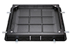 パッキンをふたまたは枠に装着し、ふたの自重によって圧着し、簡易密閉にした構造で、タイルなどの舗装材(充填深さ40mm)を充填することができます。