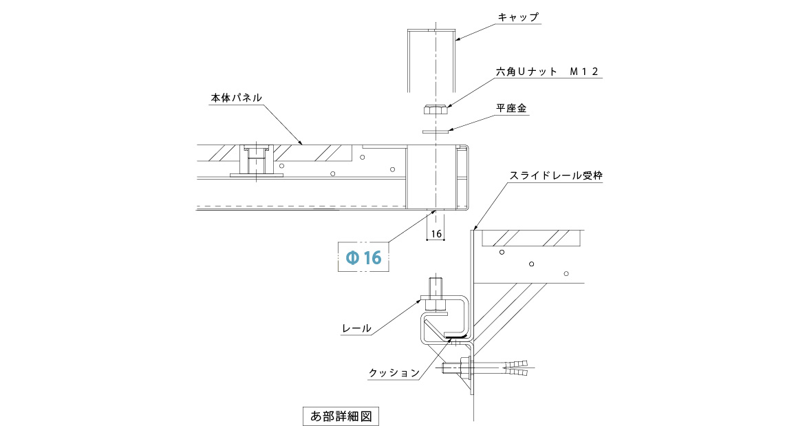 MX77VTEF-U-RK、MX77VTEF-U-RY本体パネルのレールに固定する穴の大きさは、Φ16です。