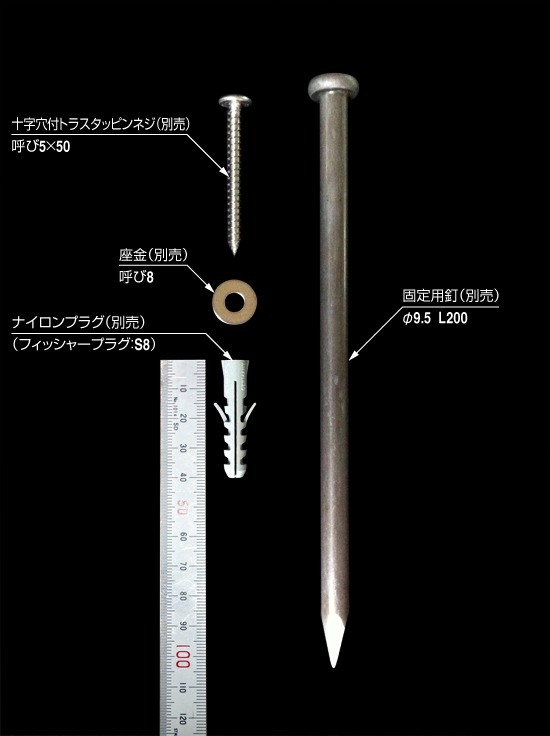 ※フィッシャープラグ:S8を使用する場合は、φ8のドリルで、深さ55mmの穿孔(せんこう・穴あけ)が必要です。