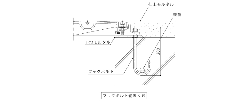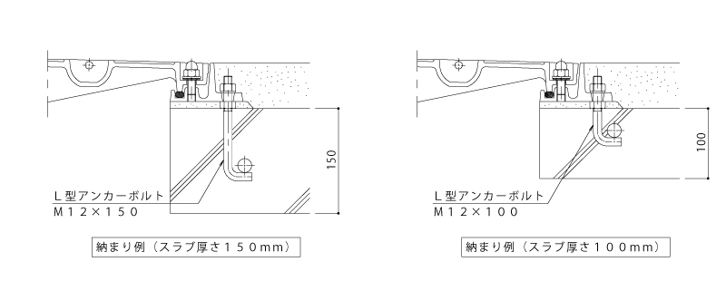 スラブ厚さによりフックボルトが使用できない場合は、寸法の短いアンカーボルトをご用意することも可能です。