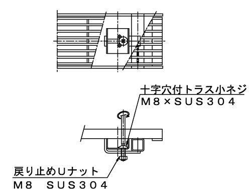 緩み止め突起を乗り越えてからねじを締めるとロック金具が上に上がっていき、角パイプに固定される。
