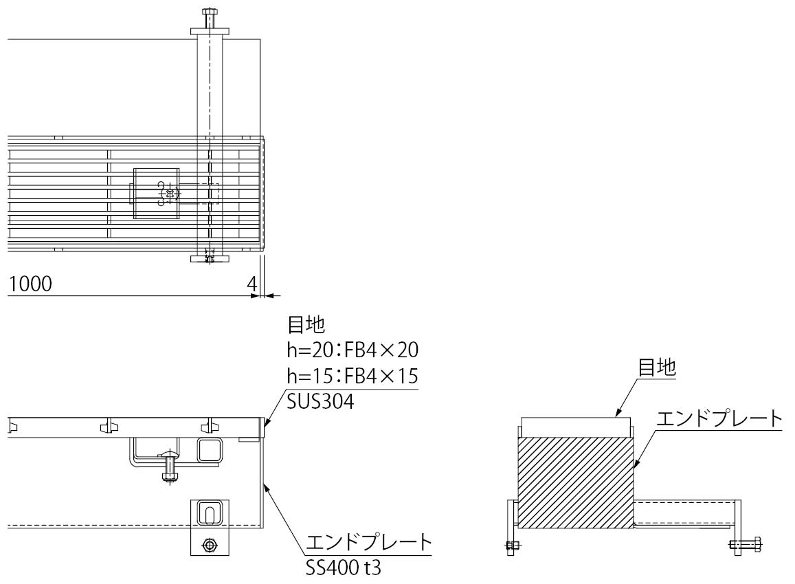 定尺用の受枠に片側エンドプレートを付けた場合の受枠の長さはL=1004になります。