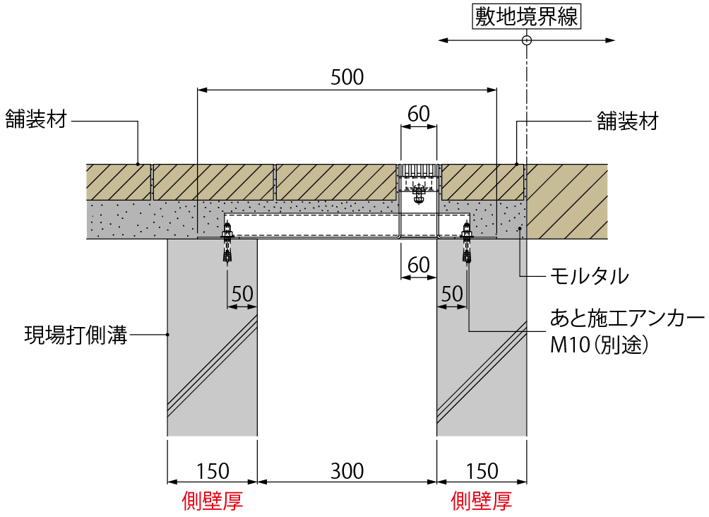 ・枠総高さは、強度に対応する補強梁サイズと舗装材厚みにより、変更となります。