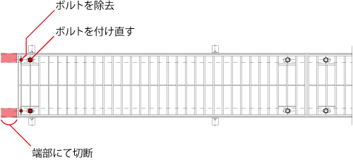 端部のボルトを除去し、ボルトを付けなおす必要があります。