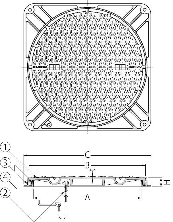 - SHASE-S209-2009 鋳鉄製マンホールふた 種類500K(T-2仕様)に準拠しています。