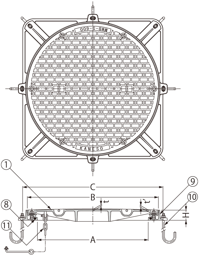 - 枠のフックボルトによる固定は、受枠の変形・破損を防ぐため、手締めで均等に締め込んでください。