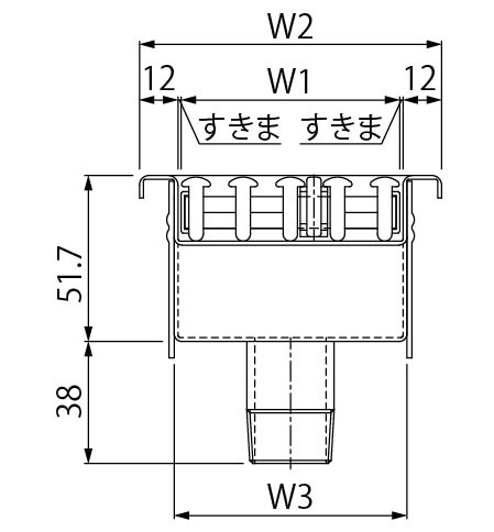 樹脂製スリット すきま6mm 屋内用 ステンレス製トラフ 中央部排水 たて引き用