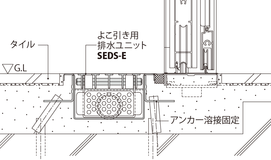 - 玄関などに設置する、トラフ一体型水切りユニットです。