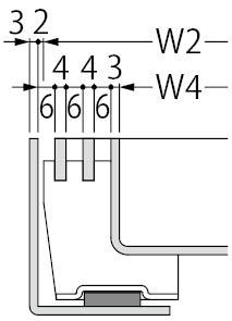 | みぞ幅 | 呼称 | W1 | W2 | W3 | W4 | L1 | L2 | H1 | H2 | t | 開口面積(mm2) | |