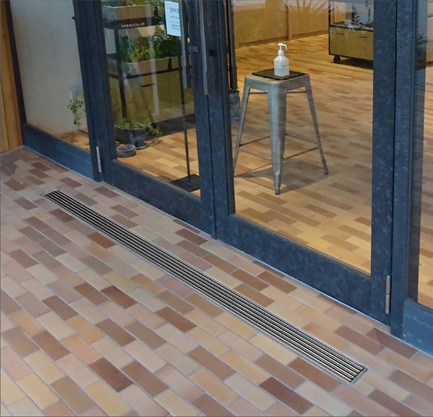 建物出入口部に設置する、トラフ一体型水切りユニットです。