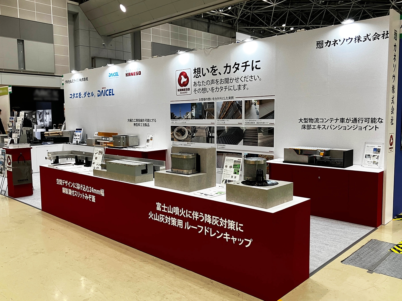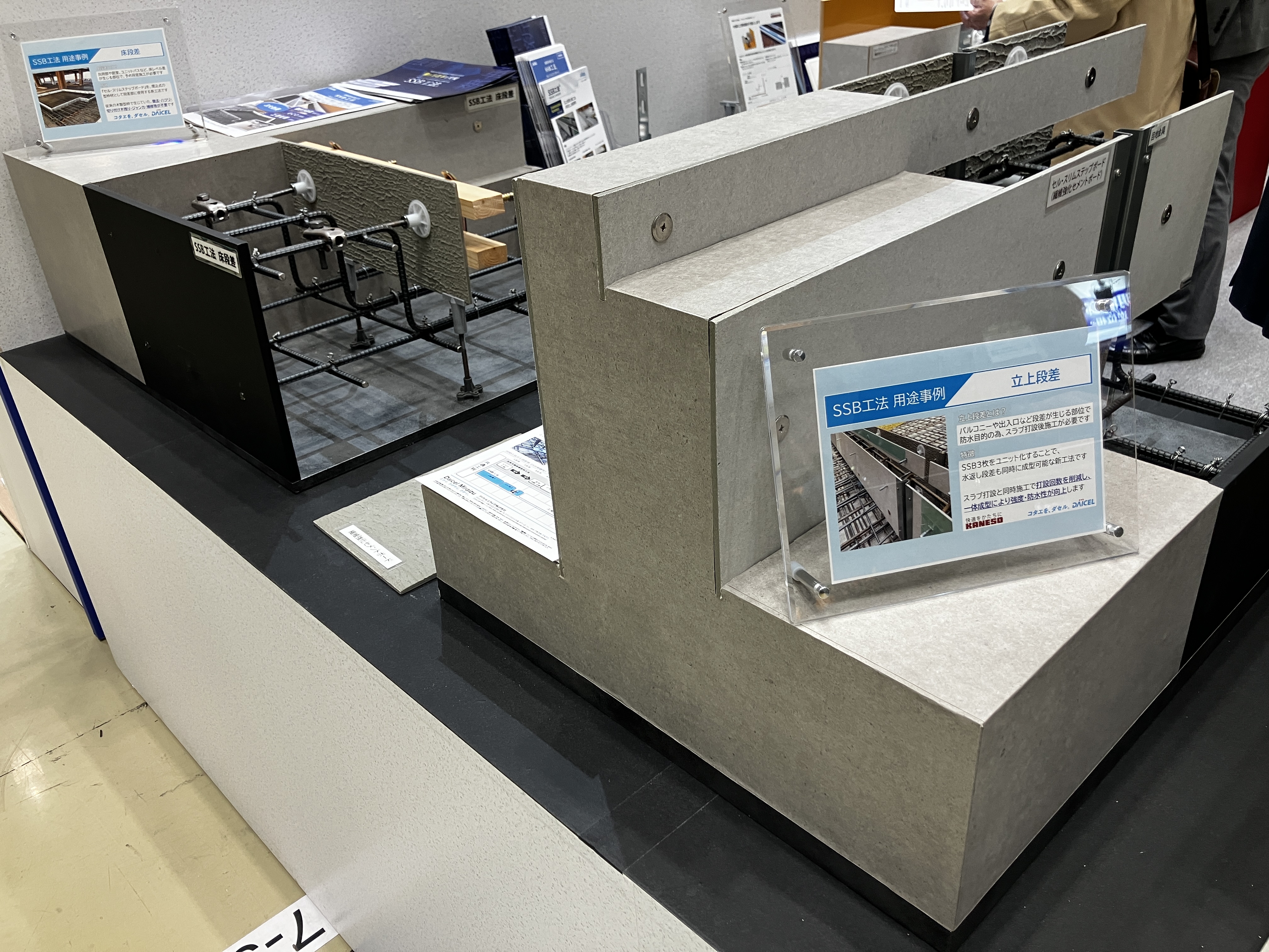 共同出展者のダイセルミライズ株式会社様は、SSB工法の用途事例として「立上段差」、「床段差」を展示されました。